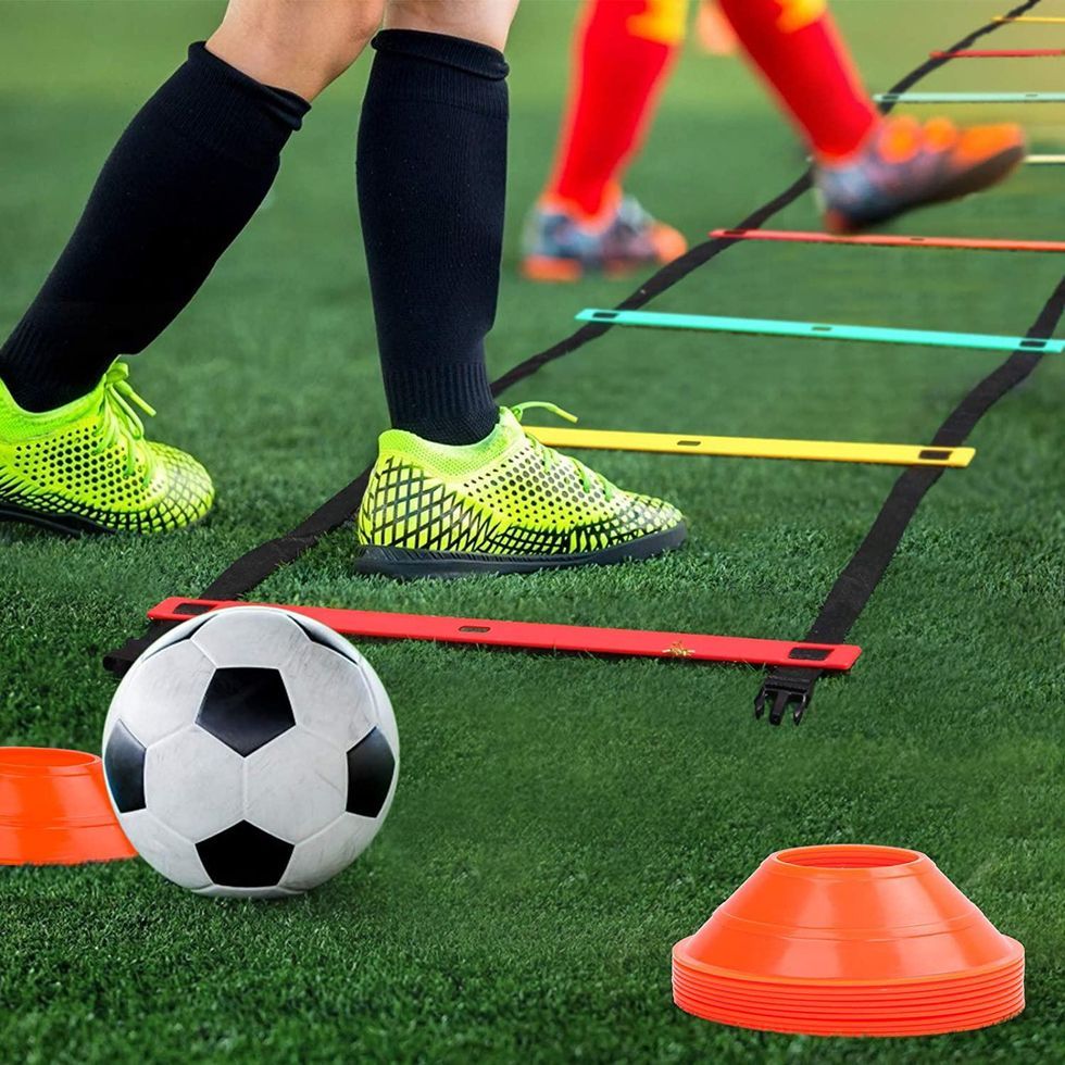 You’ve probably seen agility ladder sets in movies and TV shows where athletes are running through them as fast as they can. You’re not an athlete and you’re probably not even going to be moving that fast, but you can still exercise (get it?) the benefits of an agility set like this one. It includes the ladder, cones, and a travel bag to help improve your fitness, agility, speed, vertical jump, and more.