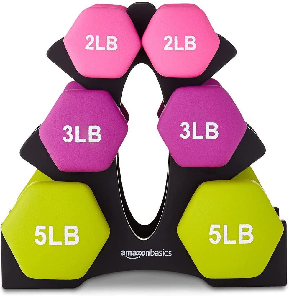 ​You don’t need a complicated weight bench to see the results of working out. This neoprene-coated dumbbell hand weight set is another Amazon Basics product that’s nothing but basic. The set pictured includes 20 pounds of weight and a handy stand, but there are other configurations at the link to suit your needs. The weight numbers printed on the ends are a helpful feature.